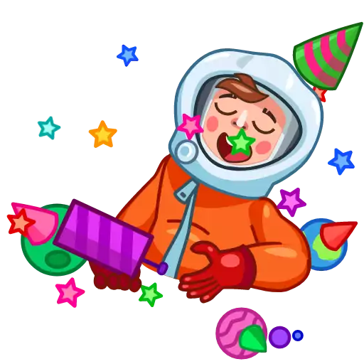 Стикер 🥳 из набора "Yuri the Cosmonaut"