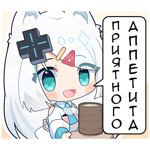 Puedes ir a la página Мизуки 2 @Nyasticks y descargar todo el paquete de stickers. Si deseas añadir sólo algunos stickers, prepara un paquete usando una app para crear stickers y luego impórtalo.